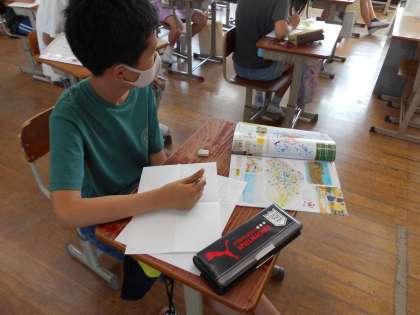 最初に漢字の読みを確認しましたが,5年生で習ったはずの漢字でも読めないものや意味の分からない言葉もたくさんあり,みんなで確認したのち,文章作りに入りました。