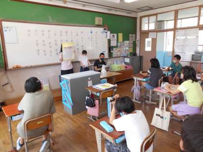 石田小学校で毎年恒例のくすのきカレンダーを作るために,それぞれの子のお誕生日を書いてもらうアンケートをもって,くすのき学級の5・6年生が来てくれました。