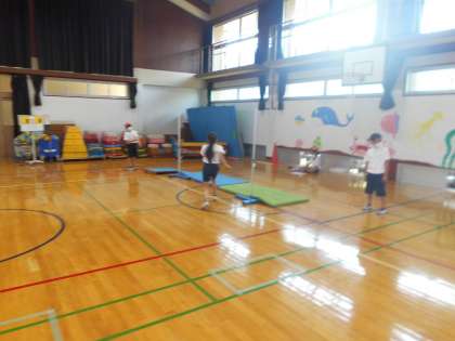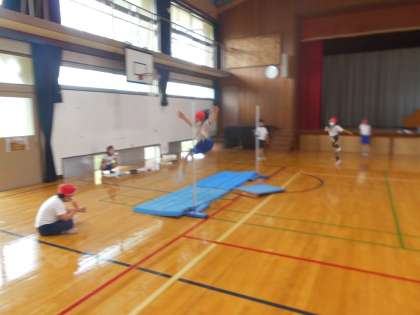 高跳びの学習も5時間目になり,どんどん上手になってきました。より高い記録を目指して,班でコツを話し合いながら学習しています。足をまっすぐと高く上げる,踏切を強くするなど子どもたち自身でコツを見つけました。自分のベストを目指してがんばります。