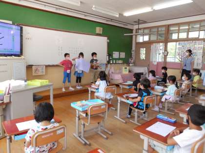 くすのき学級のお兄さん,お姉さんが,「くすのきカレンダー」を案内をしに来てくれました。
