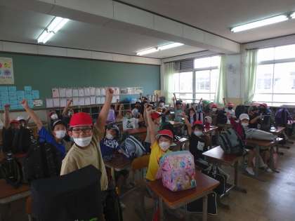 「昨日,楽しみすぎて寝れへんかった!」と言っている子もいました。全員揃っての社会見学,いざ出発です!
