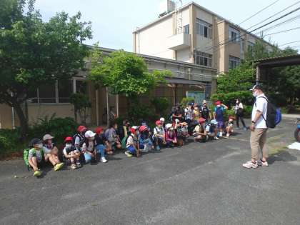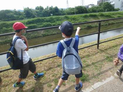 六地蔵駅への道のりでは,山科川にいる生き物を見つけて嬉しそうにしている子どもたちでした。