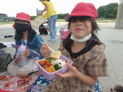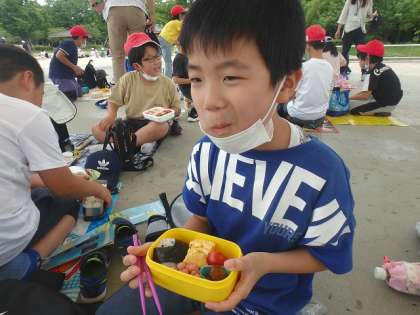 たくさん見学をして,疲れた様子の子どもたち。しかし,梅小路公園に移動してお弁当を食べると,元気いっぱいになっていました!