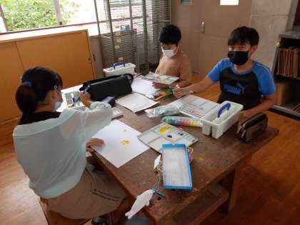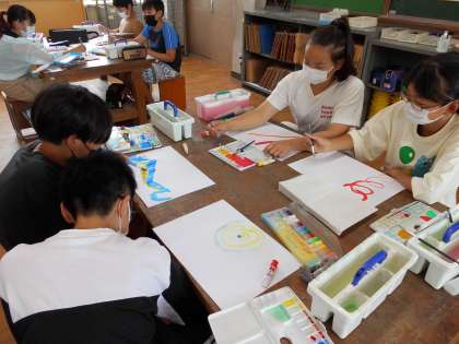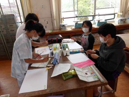 自分たちの身近な音を感じながら,いろいろなイメージを広げながら絵に表しました。