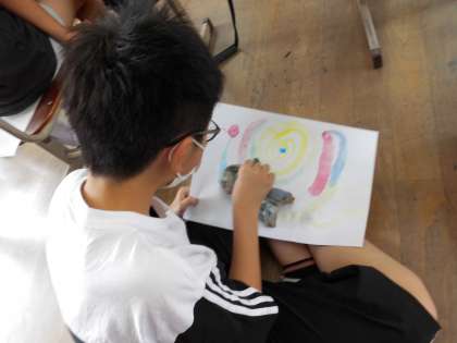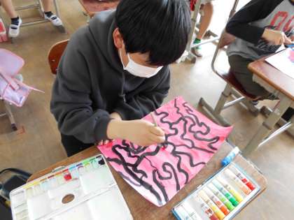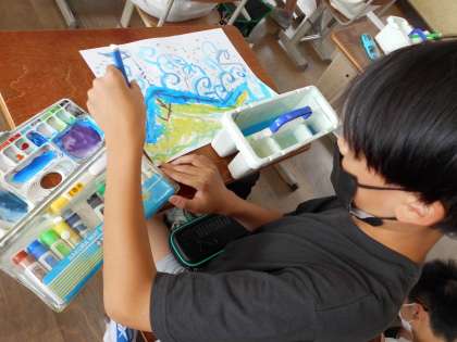 自分が表現したい絵を表すために,今までに試したことのある技法を思いだしながらどうすれば自分のイメージに近づけることができるのか,と一生懸命に試しながら学習に取り組んでいました。