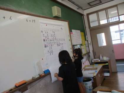 「式の数字を入れ替えても答えは同じになった!」と計算した後にたくさんの子が気づいていました。