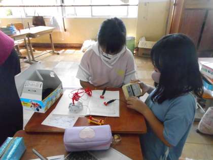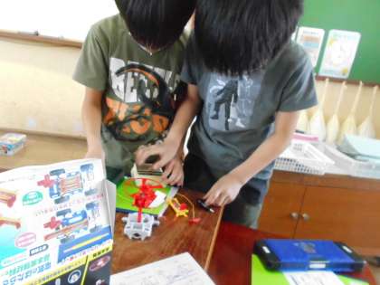 電池の向きを変えると,プロペラが回る向きがどうなるのか実験をしました。