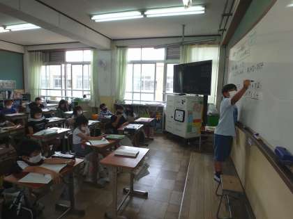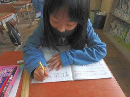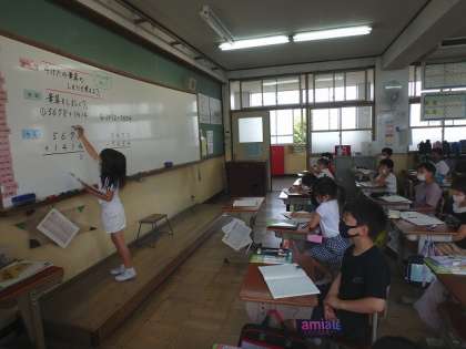 この学習での最後の時間には,4けたの筆算に挑戦しました。「きっと3けたと同じやり方でできる!」と前向きに取り組む子どもたちでした。学習の最後には,「これって4けた以上になってもできるんちがう?」と,自分で問題を作って,友達と出し合いました。
