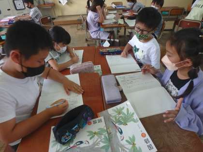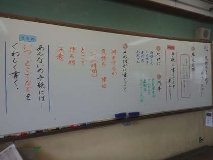 2時間目は国語の学習で,案内の手紙に必要なことを考えました。グループでしっかり話し合うことができていましたね。