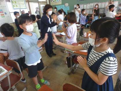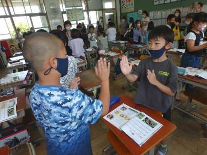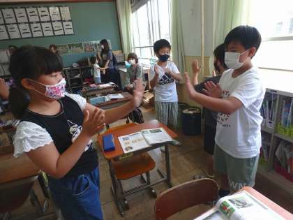 3時間目は音楽で「茶つみ」の曲を聴きました。茶畑のきれいな風景を思いうかべながら歌うことができましたね。