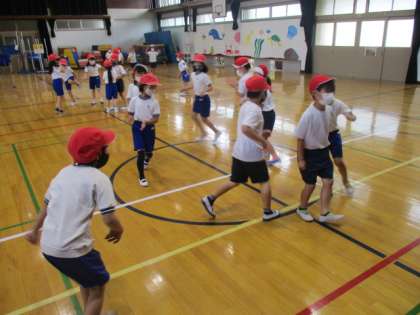 音楽の学習で習った曲をかけながら,リズムにのった動きを楽しみました。