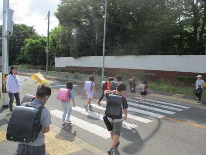 小栗栖学区の登校の様子です。