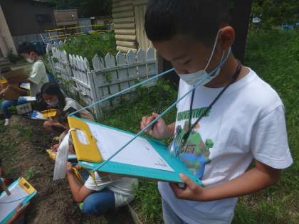 植物の観察をしました。雨の日も多くなり,葉の数や植物の高さにも変化があったようです。