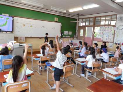 子どもたちは,「ケグルケグル」と「ゲロゲロ」が似ていてびっくりしました。や韓国や朝鮮の言葉でのいろいろな動物の鳴き声を知れて,楽しかったです。という感想をノートに書いていました。