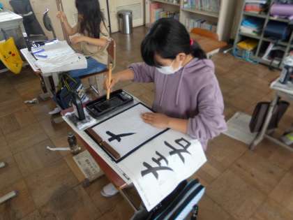 書写の学習で筆順に気を付けながら「左右」という文字を書きました。書き順が変わると画の長さが変わることを意識しながら学習することができました。2回目ということもあり,前回よりもうまく書くことができました。