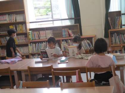 いろいろと興味のある本があるようでたくさんの本を手に取り読書をしています。