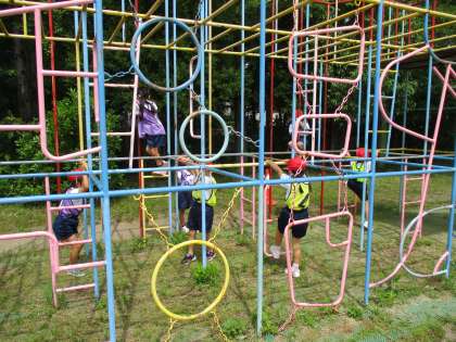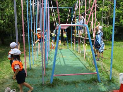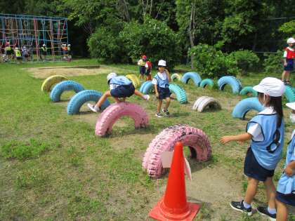 遊具あそびでは,グループで10個のあそびを順番にしています。待ちにまった遊具あそび,とても楽しく取り組んでいます。
