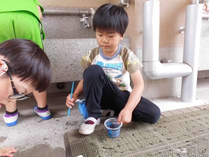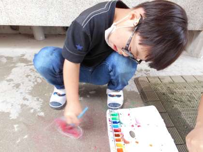 「全部まぜたらにじいろになるのかな?」