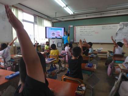 学習の最後には,地図記号クイズをしました。もちろん大盛り上がりでした。しかし,楽しみながらも,たくさんの地図記号を覚えている子どもたちに驚かされました!