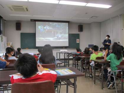 部屋ではDVDを見ながら下水処理の方法について教えていただきました。微生物の力で処理させれいることを知り,子どもたちはびっくりしていました。
