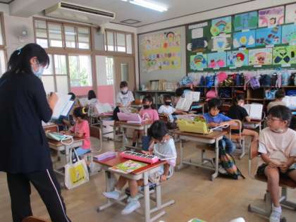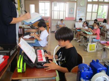 みんなで練習をしたあと,一人ずつ吹いていきました。