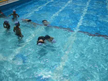 バブリングを意識して,潜ったり,浮いたりする動きをたくさん練習しました。