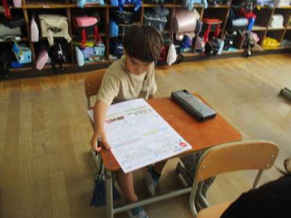 問題文を読み,図に当てはまる数字を考えたり,問題文にあうように式や答えを考えていました。