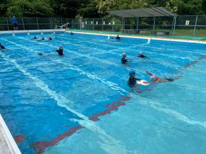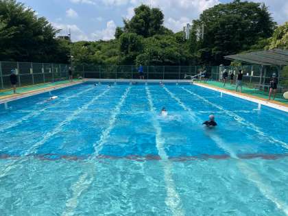 バディと声をかけあいながら,少しでも泳ぐ距離をのばせるように,練習を進めていました。