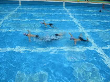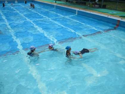 はじめは顔を水につけるのを怖がっていた子も,徐々につけられるようになってきました。