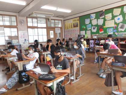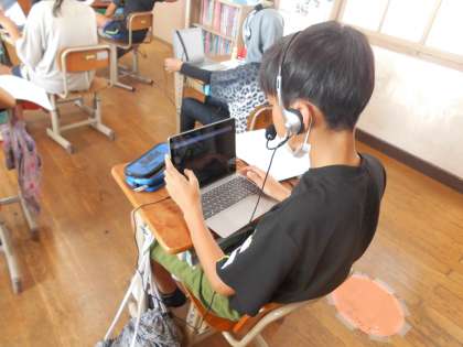 タブレットを使ってそれぞれが決められた時間の中でシーンとした雰囲気の中,学習に向かっているのがとってもいいなと感じます。