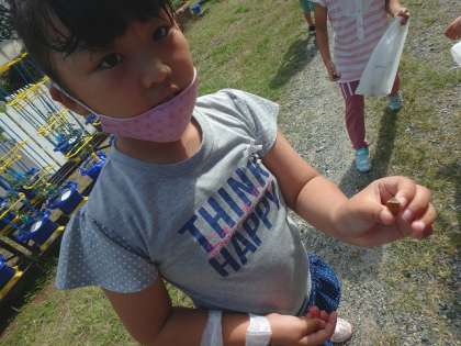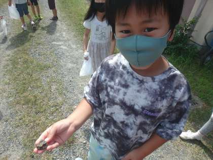 「形」「大きさ」「色」「手触り」など,自分がいいなと思ったポイントを話しながら石集めをしていた子どもたちでした。