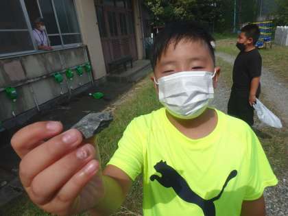 「み近なしぜんの形・色」の学習で,校内を探検し,とっておきの石を見つけに行きました。