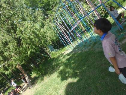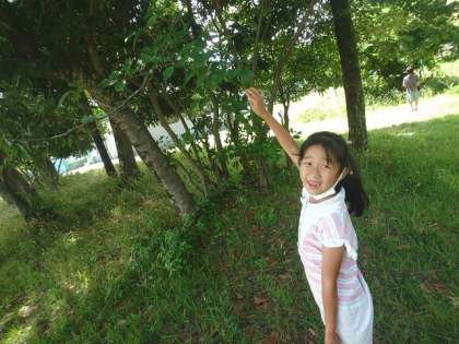 石だけでなく,校内にある木や植物にも目を向ける子どもたち。普段見ているものでも,視点を変えてみると面白い見え方になってきます!