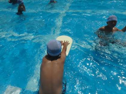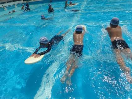 ふし浮きの姿勢がどんどんよくなってきました。この日はビート板を使ってクロールの練習を行っている子が多くいました。しかし,息継ぎが難しかったようです。これから練習を頑張っていきましょう!