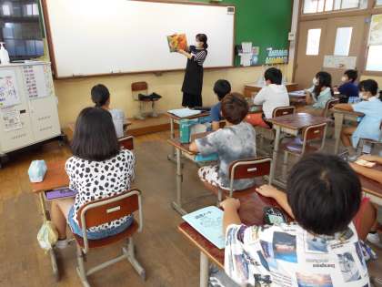 今朝,図書館司書の先生から読み聞かせをしていただきました。