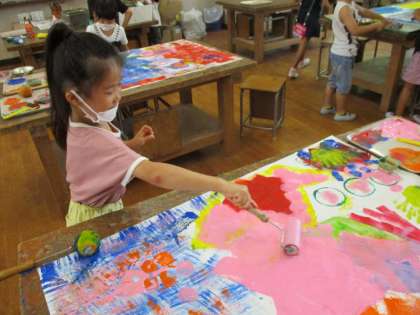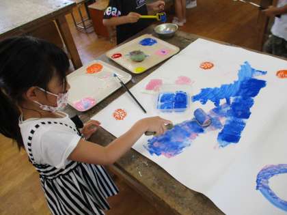 カップやスポンジなどをつかってぺったんぺったんしました。
