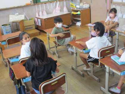 新しいゲームをして、好きな数や色などを伝える練習をしました。