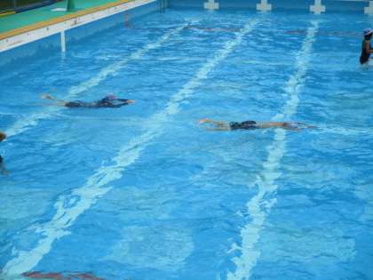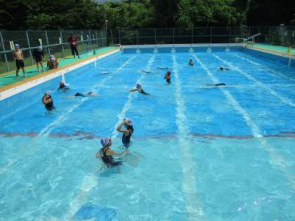 水の中でのいろいろな動きを学習していますが、子どもたちはバブリングを大切にして、長く潜ること意識しています。