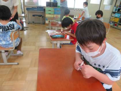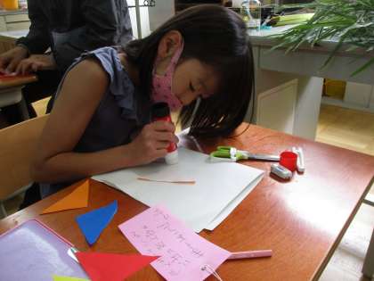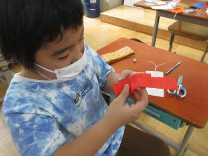 七夕ということで、みんなでマイ笹をもらい七夕飾りを作りました!