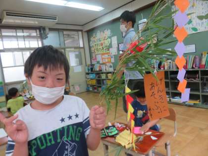 しっかりと丁寧に飾りを作り、マイ笹が完成しました!!