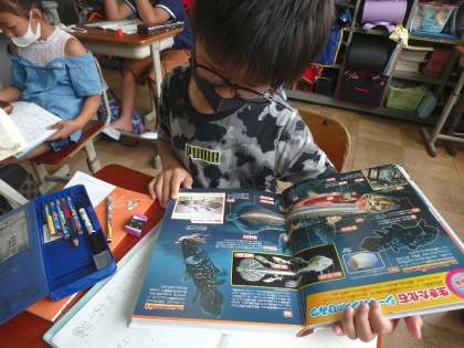 図鑑や化学読み物を読み、初めて知ったことを見つけました。見つけたことについて自分の感想も書きました。自然と初めて知ったことを交流している姿がすてきでした。