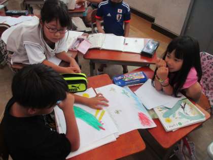 あったらいいなと思うものを描いた絵を見せながら、グループの人と交流をしました。