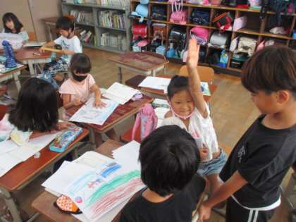 「どうして〜〜の?」「どんな○○なの?」と絵を見ながらたくさんの質問をお互いにしていました。