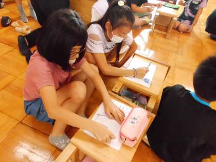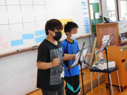 4文字の言葉をリズムにしてリズムアンサンブルを作りました。2人組でリズムを考え、みんなの前で発表をしました。