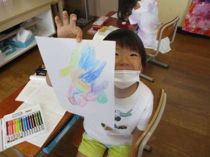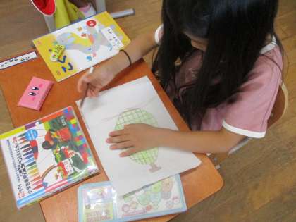 すきなものカードを作って友だちに伝える学習です。すきなものカードの絵の部分を描きました。