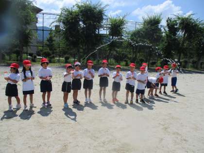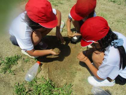 だれが一番遠くに水を飛ばせるかをしたりどろ団子をつくったりしました。