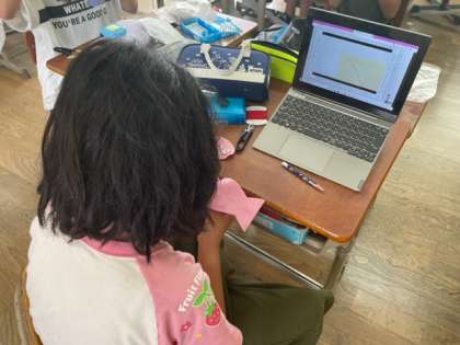 なみぬいやボタン付けなど、説明書を読んだり、動画を見たりしながら、自分たちで作業を進めていました。
