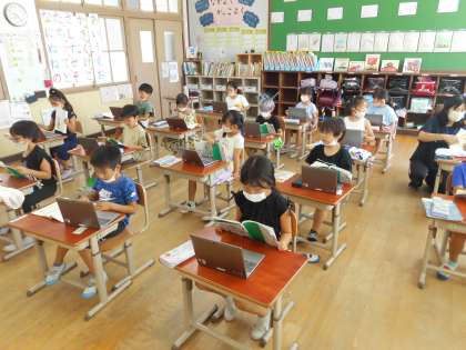 タブレットを使って、好きな場面とそのわけ、そして音読を録画し、みんなで友達の発表を聞きあいました。