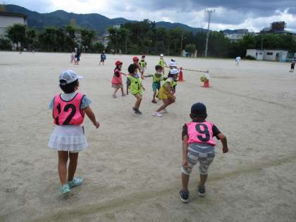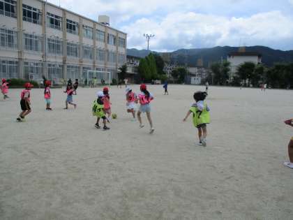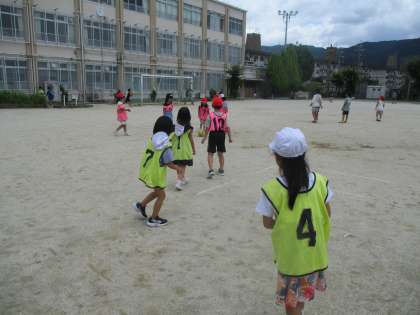 みんなあそび係が考えたあそびをクラスのみんなであそびました。みんなで楽しくサッカーをしました。