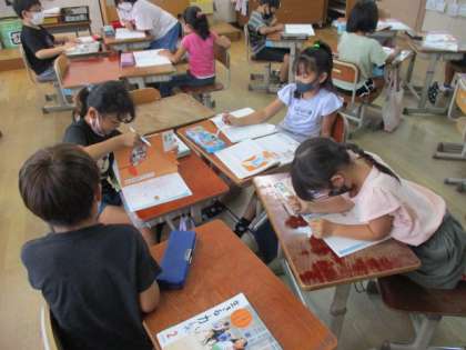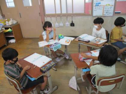 子どもたちは、言葉が通じなくても、みんなが知っている遊びをやるとよい。日本語を教える。相手の言葉を教えてもらう。など、いろいろな意見を出しながら、言葉が通じなくても、関わりをもつことの大切さについて考えていました。